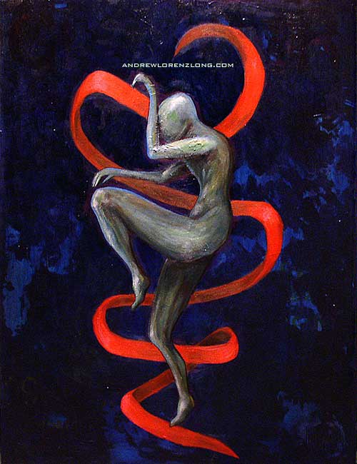 So I started off with this sketch and decided to make this into my next painting. With the ribbon I realized that this was sort of like a sequel to the only painting from my college days that anyone seemed to actually like: